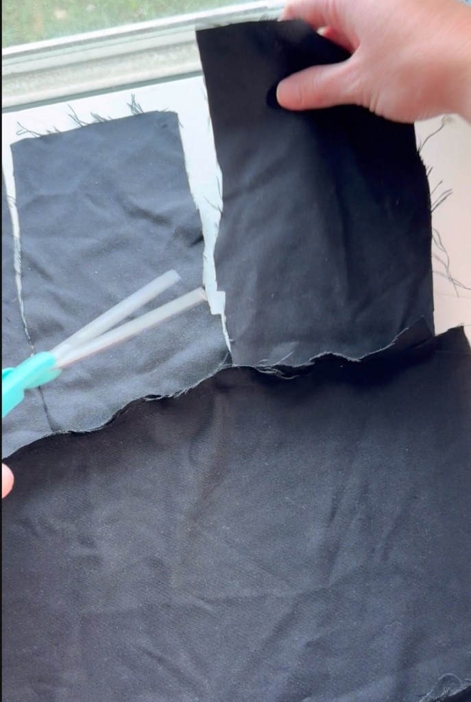 - Start by cutting two small rectangles from the pants. The size can vary depending on the width of your rolling pins.