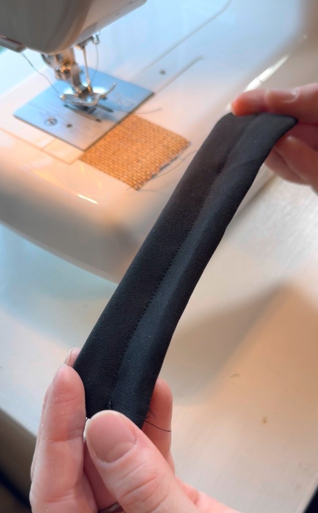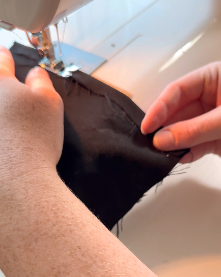 - Hem all four sides of each rectangle to prevent fraying. If you’re not an expert sewer, don’t worry—this project doesn’t require perfect stitching, then fold in half lengthways and sew down the middle, then sew the ends.