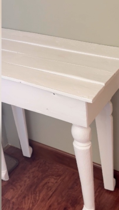 Once painted and dried, I stepped back and admired the final product. The table was completely reborn! What started as an old, rotting piece became a beautiful, custom-built table with a rustic yet refined vibe. The best part? Those charming legs that had caught my eye from the beginning were still the stars of the show.