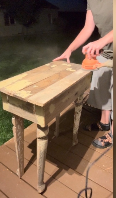I dismantled the pallet boards, sanded them down to smooth out the rough edges and imperfections. Once the boards were ready, I arranged them into the shape I wanted for the tabletop and sides. I wanted something narrow and taller than your standard side table—perfect for small spaces or as an accent piece.