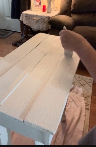 Nailing the boards together came first, with a few well-placed screws for added support. Even though the boards were rustic and worn, it all started coming together in a way that felt sturdy but still had character. After all the pieces were in place, I filled in any cracks, gaps, or visible screw holes with wood filler.