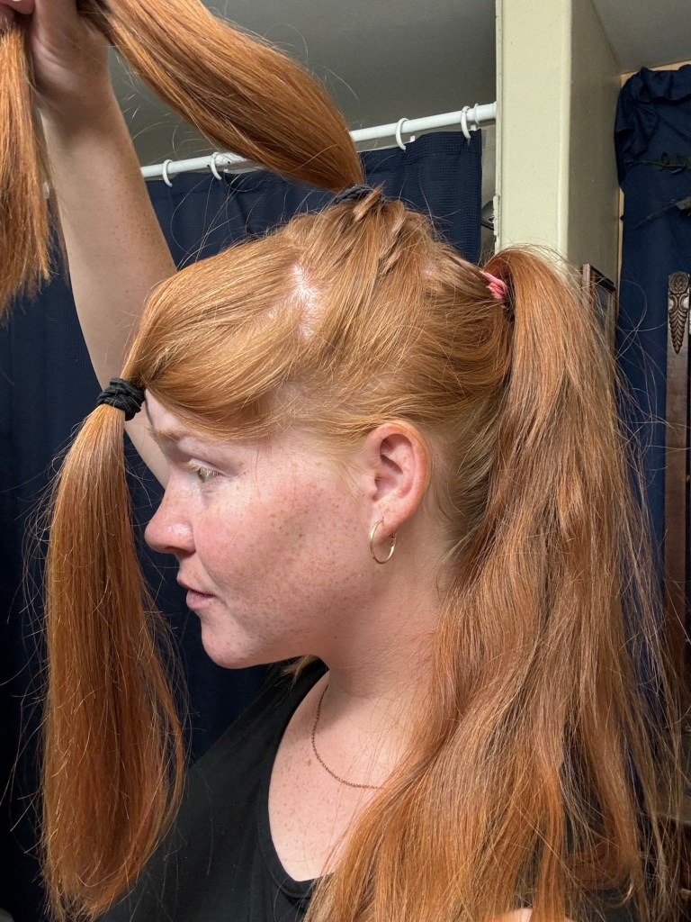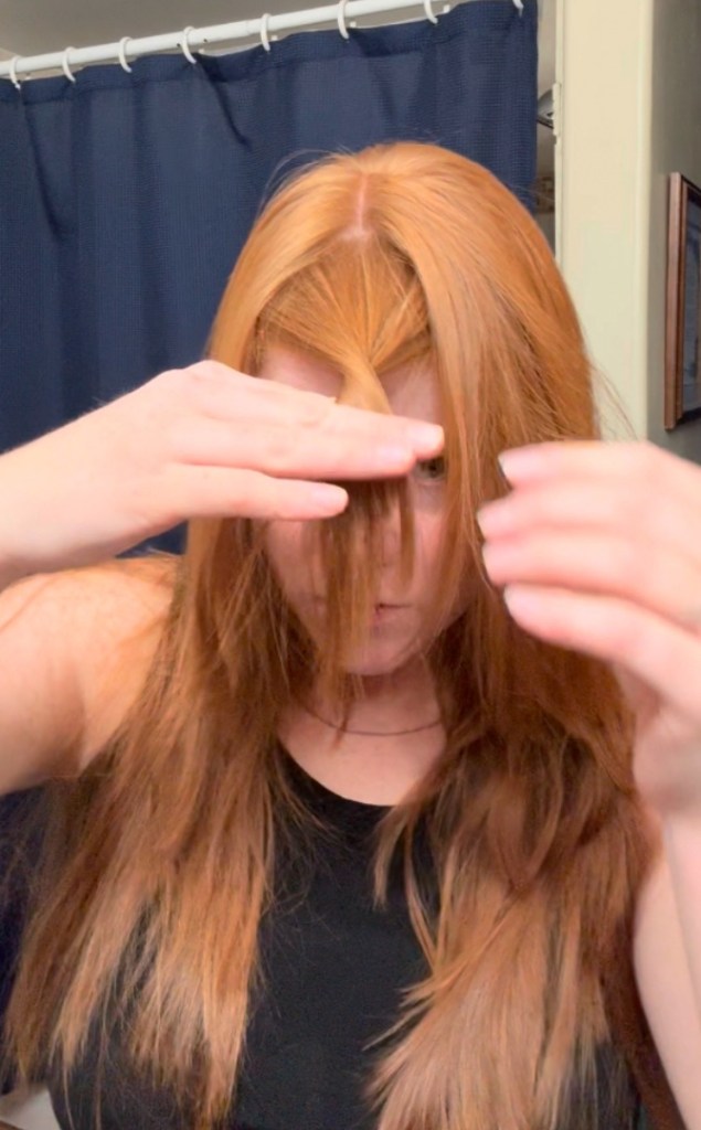 • Side Ponytails: I bring each side to the front, which helps with face-framing layers and bangs.