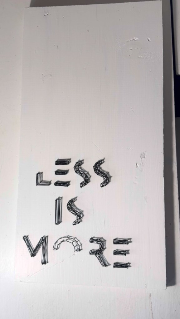 I’m thrilled with how it turned out! The phrase “less is more” really stands out against the white background in a way that feels both stylish and personal. It’s now a subtle statement piece in our home that keeps us inspired and reminds us of the value of simplicity.
