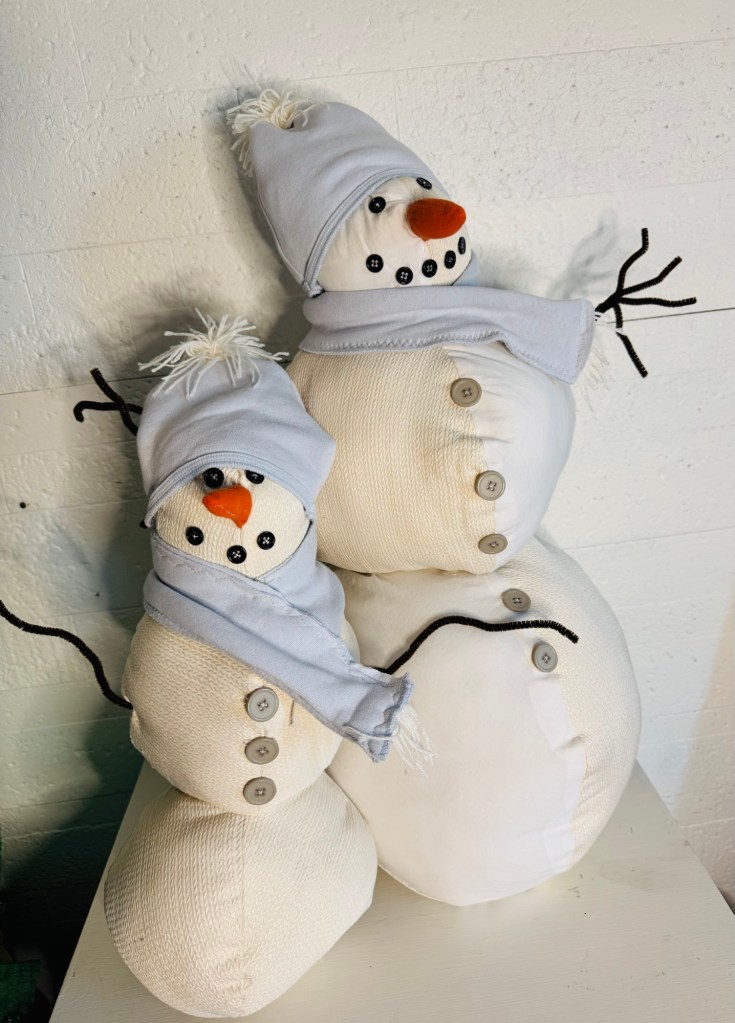 I even made a smaller snowman to pair with the larger one for a charming winter duo! While sewing isn’t my strong suit, I’m happy with how they turned out. If you’d like to try this project, I highly recommend the YouTube tutorial I followed for guidance and patterns.