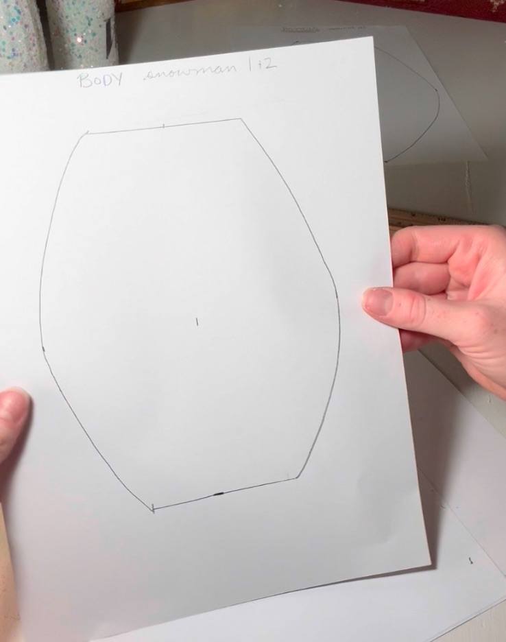 2. Assemble the Body: Sew the right sides of the fabric together for each section. Then sew all three sections (head, middle, bottom) together to form the snowman’s body.