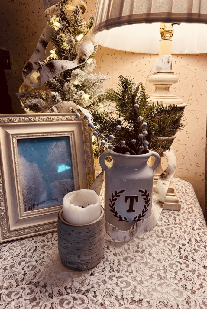 • Lighting: Soft, warm lighting creates a cozy winter atmosphere. I keep fairy lights and lanterns out, pairing them with candles in clear or frosted holders.
