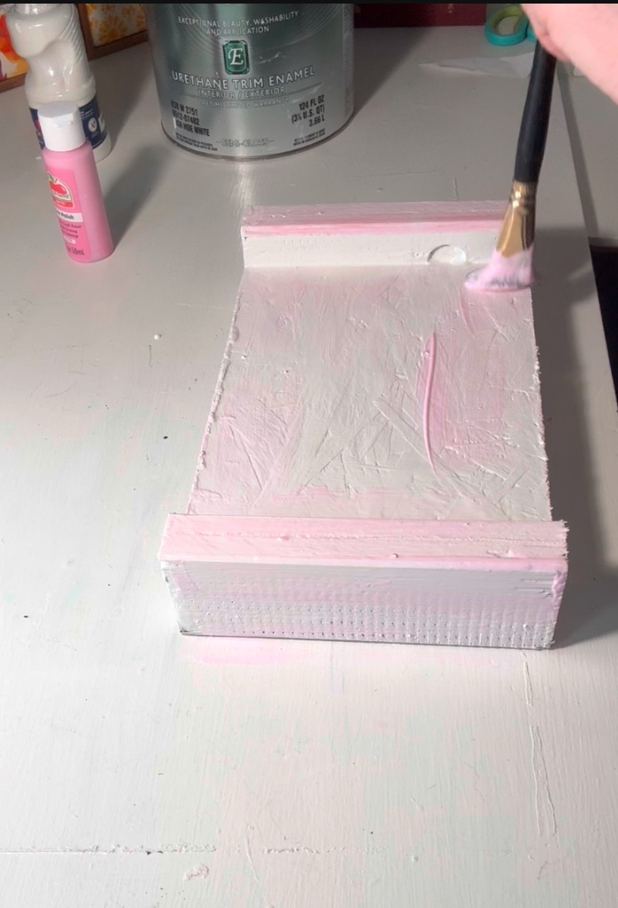 To transform the rough scrap into an art-worthy surface, I first primed it with a basic primer to seal the wood and create a base layer. After the primer dried, I painted it a soft, light pink to set a delicate, feminine tone. This muted background provided the perfect contrast for the white and pink paper quilling I envisioned.