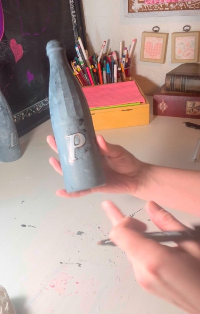 To make the letters pop, I outlined each one with a permanent marker. The bold lines added contrast and gave the bottles a polished finish, tying the design together perfectly.