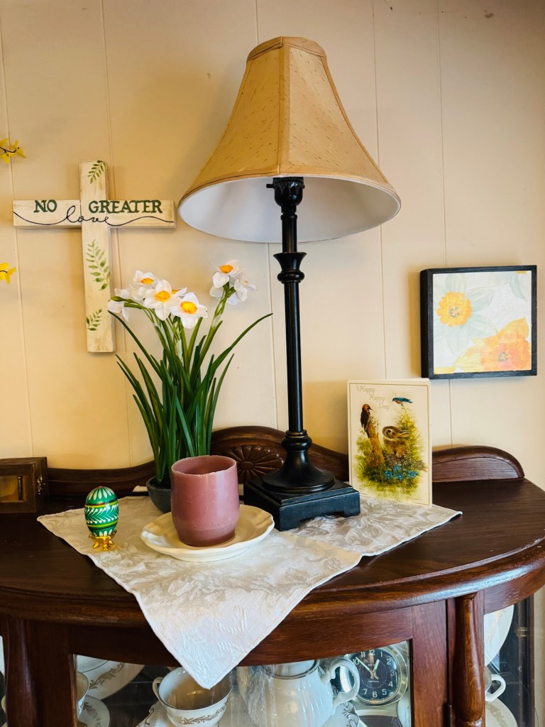 Those two colors feel meaningful and beautiful to me for Easter. They set the tone without falling into the typical pink-and-blue Easter palette that never quite worked in my space.