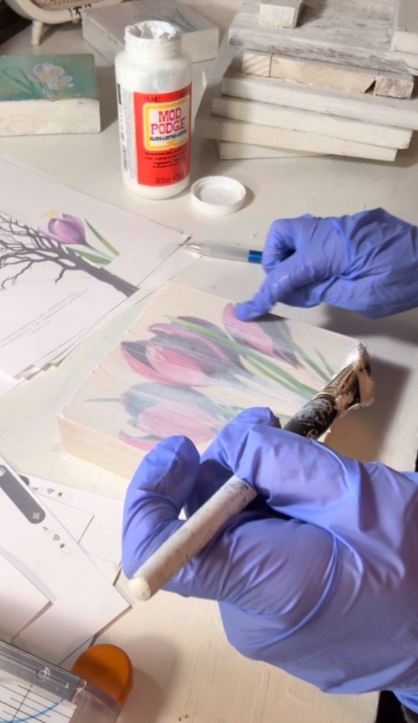 One tip: sometimes Mod Podge can discolor paper or give it a slightly cloudy look. A few of the pieces didn’t look exactly how I wanted once they dried, so I went back in and touched up certain areas with paint—especially around the edges or over lighter parts of the prints. It made a huge difference and gave them more of a handcrafted, artistic vibe. So if you try this and something doesn’t look quite right, don’t be afraid to paint over parts once it’s dry! It’s a great way to save a piece you’re not quite in love with yet.