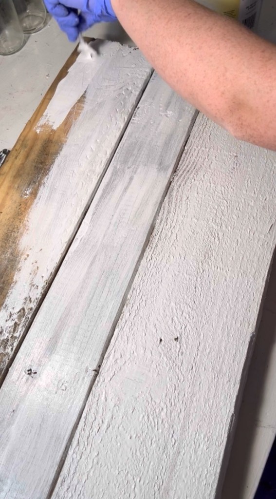 I started by creating the base from old pallet boards. I nailed them together and gave them a coat of white paint to make a clean background for the design. Then the fun began.
