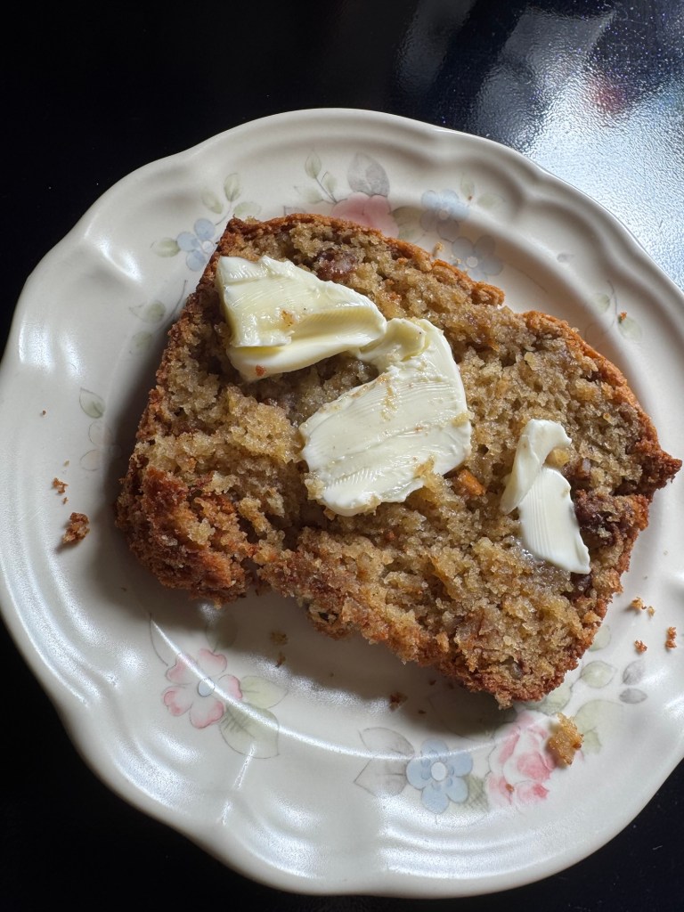 This banana bread is delicious on its own, but for an extra treat, try toasting a slice and adding a bit of butter or cream cheese.
