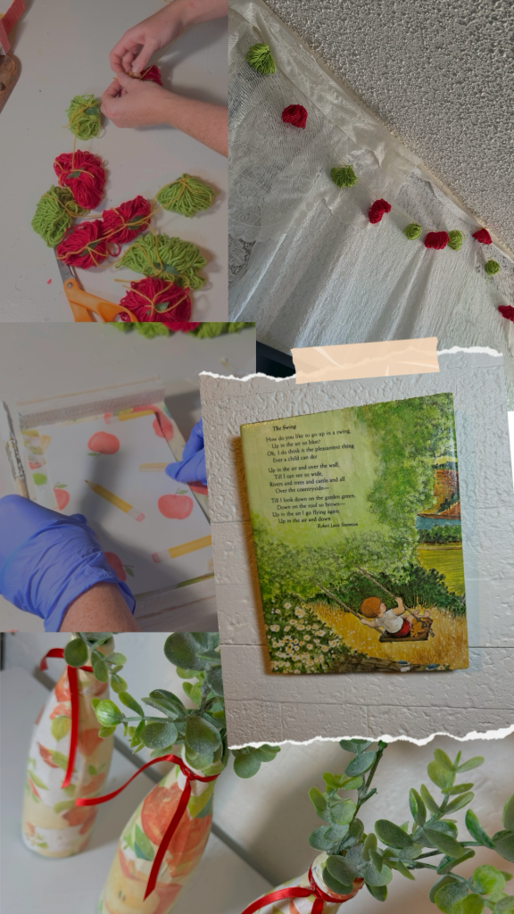 I did both red and green “apples” and tied them along a long strand of yarn to create a cute, colorful garland. It turned out so playful and fun — perfect for hanging across a mantel, shelf, or even on the wall near a homeschool station or classroom corner.