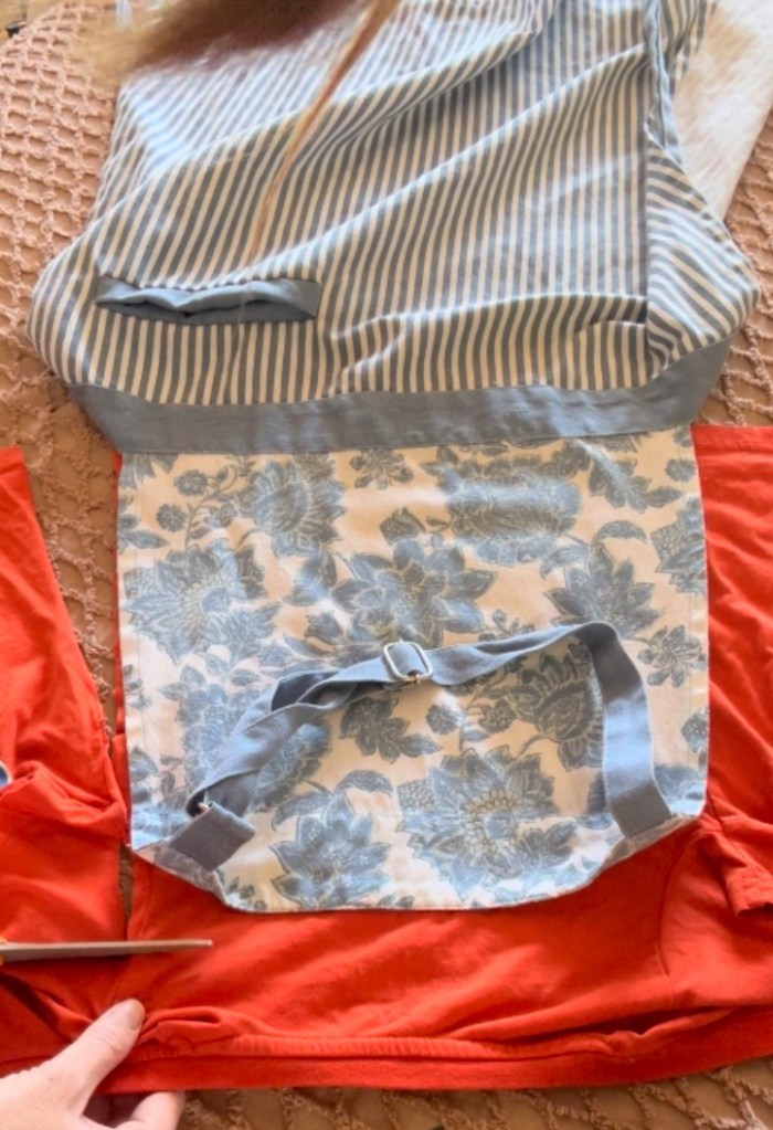 Once I had the basic shape, I played around with mixing fabrics—adding a pocket from an old shirt and using a different material for the straps. That little mix-and-match style gave it a unique fall vibe and made it feel personal to me.