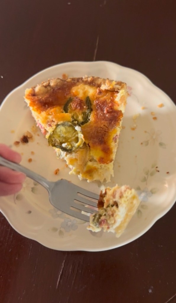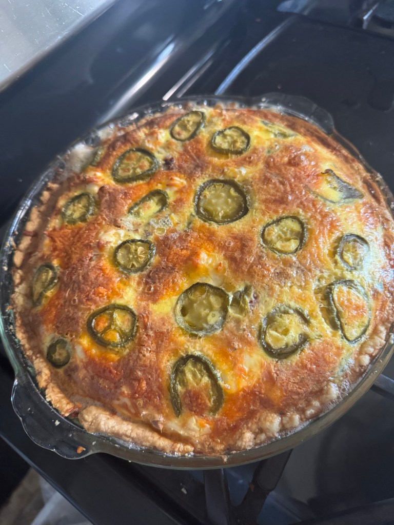 The crust – Buttery, flaky, and golden. Totally worth making from scratch. The filling – Creamy cream cheese, melted cheddar and mozzarella, smoky bacon, and jalapeños in every bite. Easy jalapeños – I used canned sliced jalapeños (just chopped them fine), which made it super convenient and still gave amazing flavor. Plus, I scattered a few slices on top as a pretty garnish! Anytime meal – Perfect for breakfast, brunch, or even a cozy dinner with a side salad.