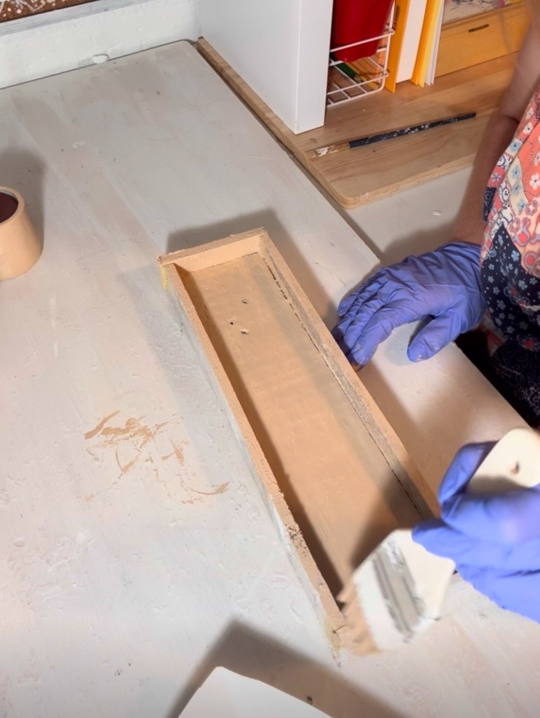 This created a shallow tray that perfectly cradles the jars but still lets them be the star of the show. I painted the whole tray the same tan as the jars so it would all tie together.
