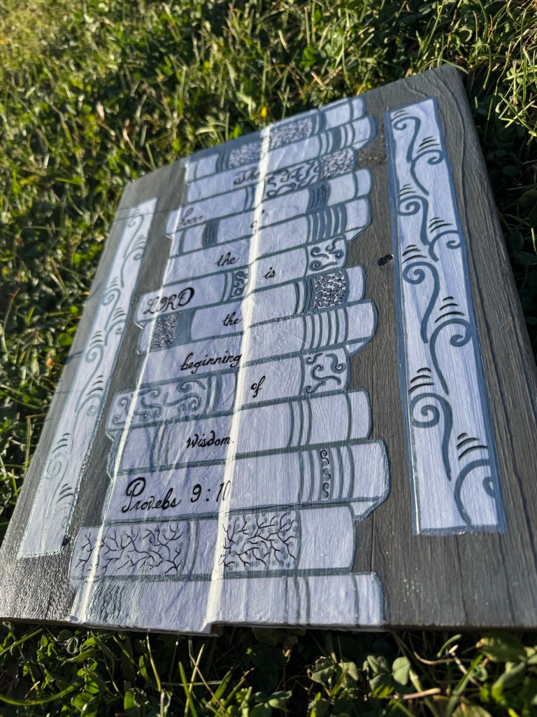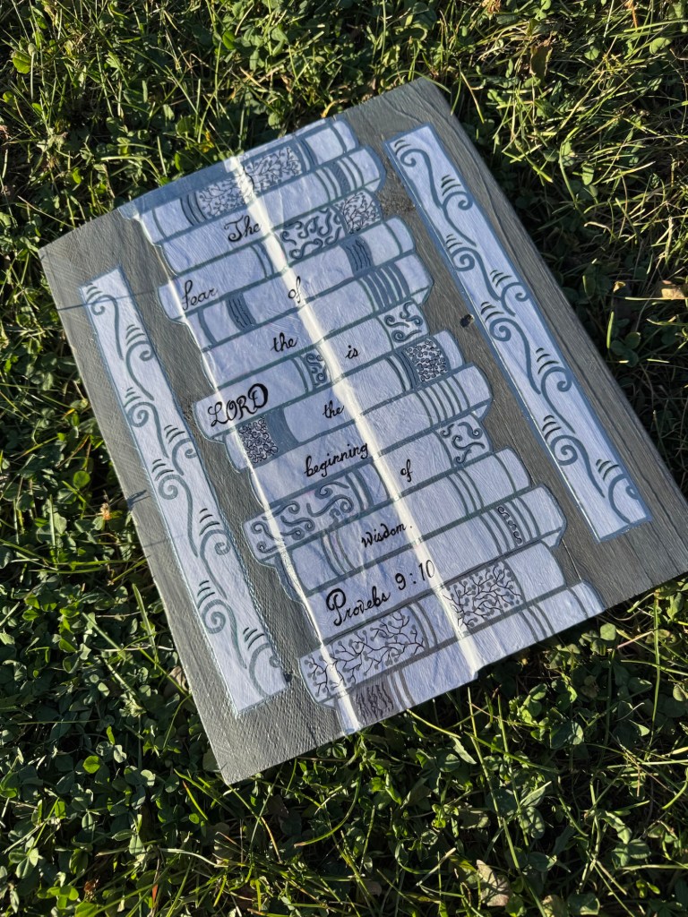 In the end, my scrap-wood sign turned into a meaningful piece of wall décor. I love how the verse flows down the books, reminding me daily that wisdom starts with reverence for the Lord. It’s rustic, simple, and heartfelt—proof that you don’t need expensive supplies to create something both beautiful and meaningful.