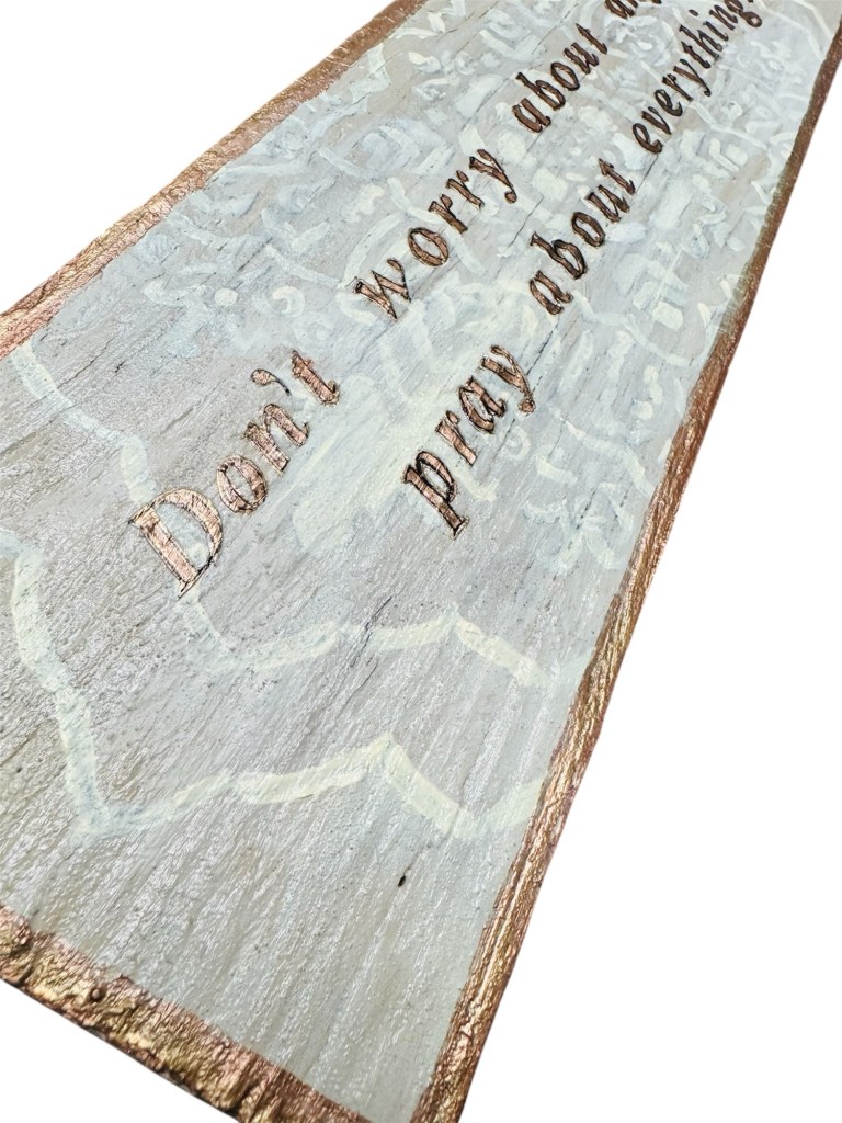 Have you ever looked at your scrap pile of wood and thought, “I should just make something with that”? That’s exactly how this little project started. I had a rough, rectangular piece of junk wood—nothing fancy at all—and decided to turn it into a simple, inspirational prayer sign. The quote I used was: