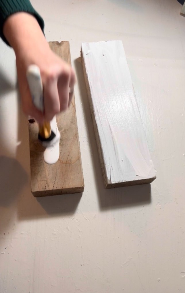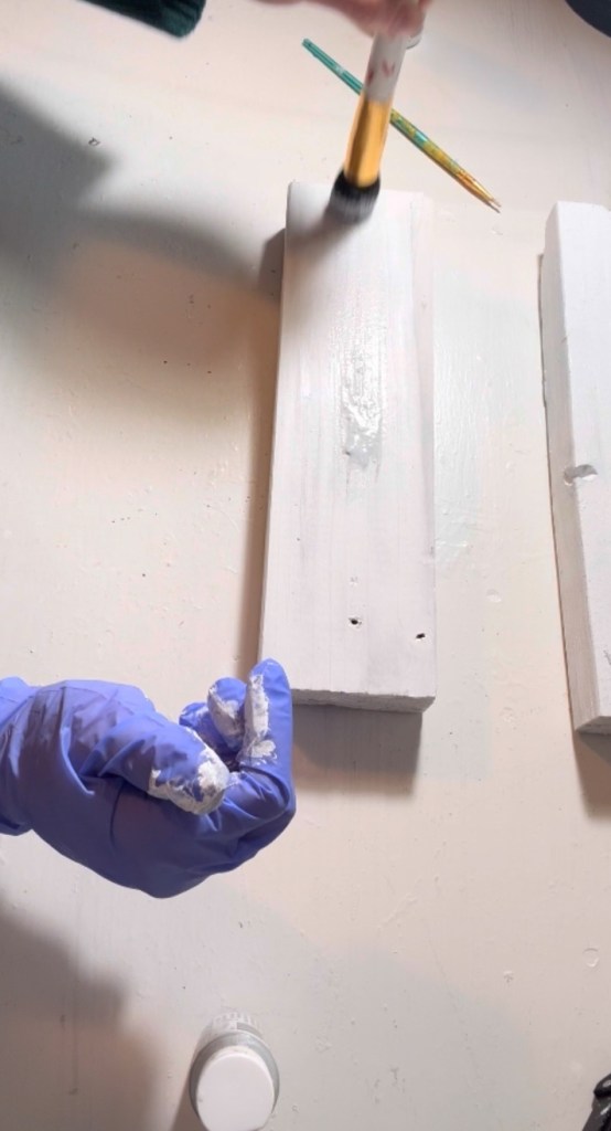 Painted each board white Let them dry completely Added a coat of clear sparkly paint for a subtle shine
