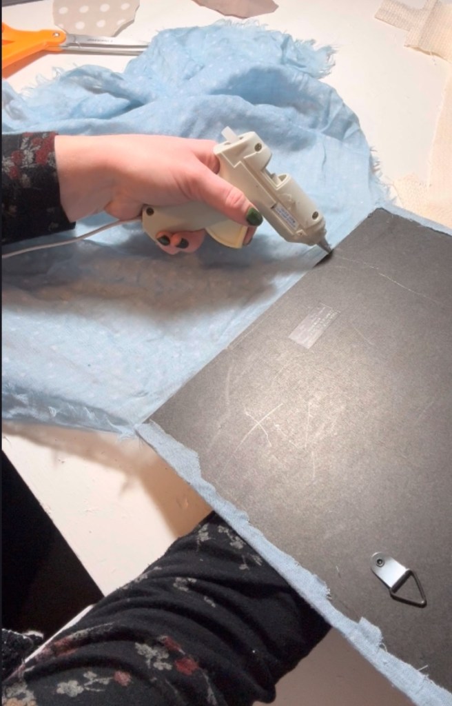 The glass and frame itself were ruined, but the frame backing was still in great shape. It was thick, sturdy, and already had hanging loops on the back — which honestly made it the perfect base for a DIY project.