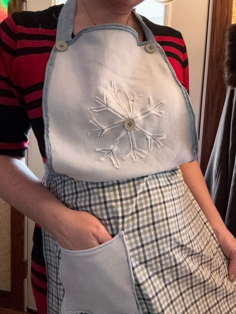This apron definitely isn’t perfect. It’s a little rough around the edges, very homemade, and probably won’t win any sewing awards — but it has its own kind of cuteness. It feels cozy, wintery, and personal, which is exactly what I wanted for after Christmas.