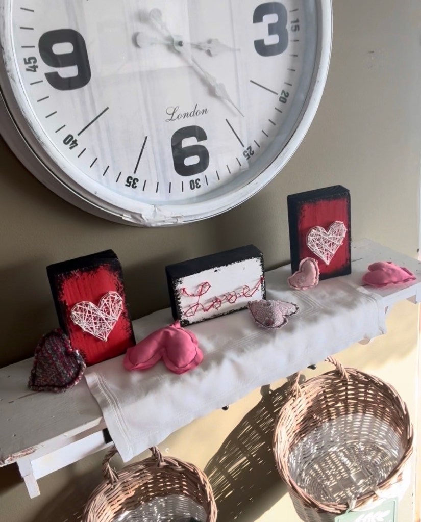 This week I officially decorated for Valentine’s Day, and instead of overthinking it, I decided to keep things simple, fun, and creative. Valentine’s décor doesn’t have to be complicated or expensive to feel special — sometimes it’s just about leaning into a color palette and making what you already have work.