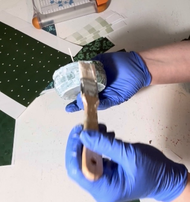 For some of them, I tried applying dark green paper with Mod Podge to add a little texture. After the paper dried, I painted over it with dark green paint and added some copper accents. The copper really helped elevate the look and gave the jars a nice festive feel.