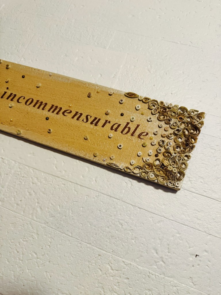 The heart of this piece is the phrase “joie incommensurable.” I printed it out in a brown font that felt soft and timeless, then carefully cut it out using a scalpel.