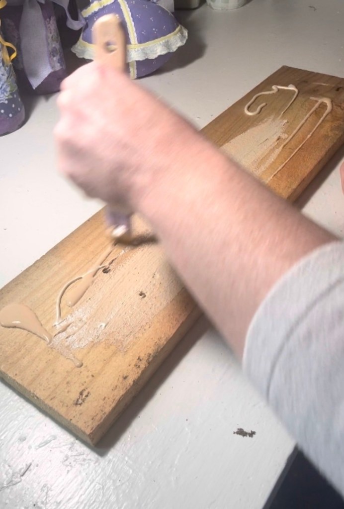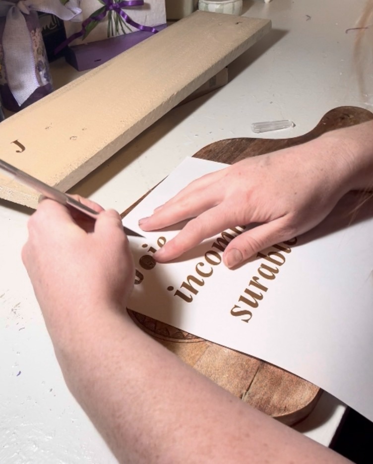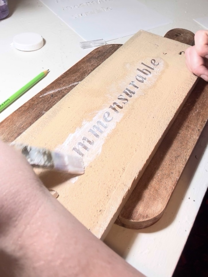 After measuring and centering it on the board, I used Mod Podge to adhere it to the surface. Even at this stage, it already felt so special seeing those words finally come to life on something we could keep forever.