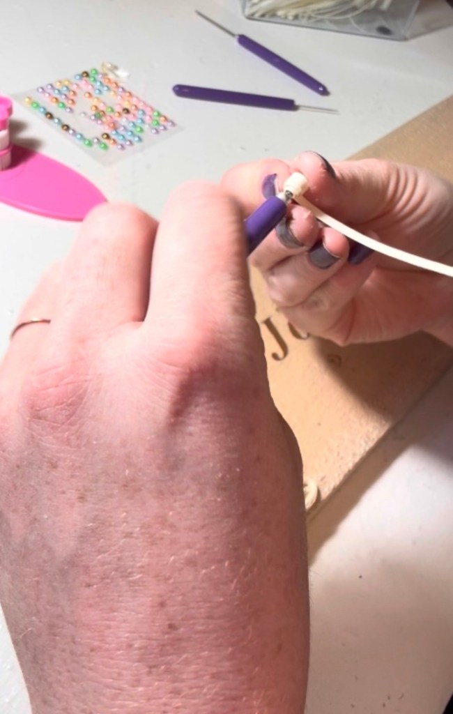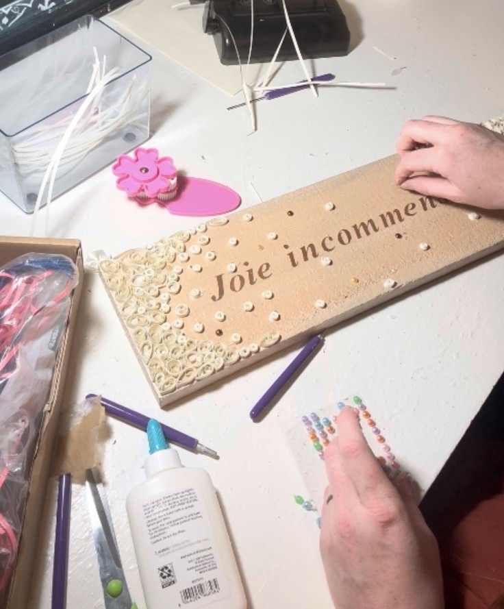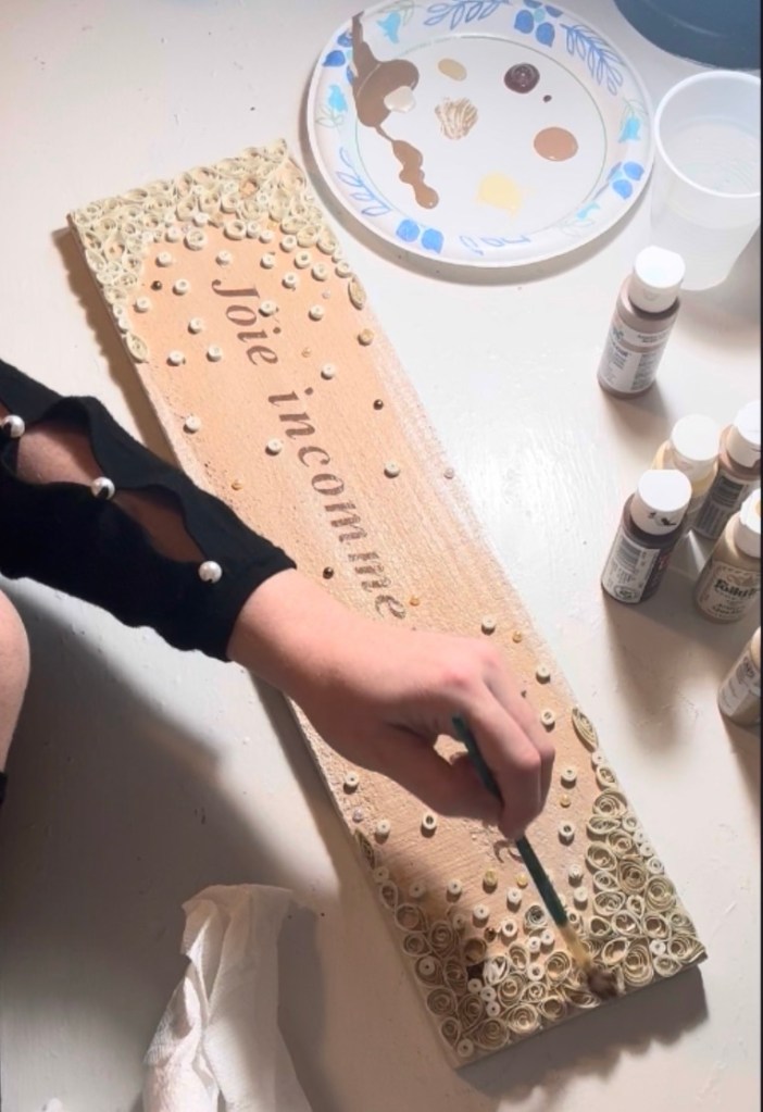 On both ends of the sign, I clustered the quilling shapes more densely, then gradually spaced them out toward the center. This gave it a flowing, almost “falling” effect—like the design is gently moving across the board.