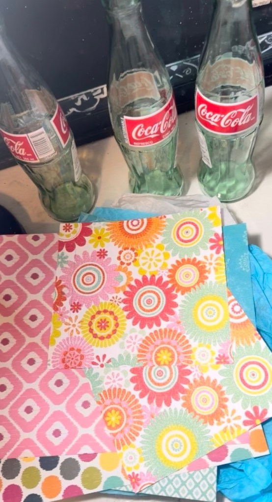 Some old bottles Scrap paper Mod Podge