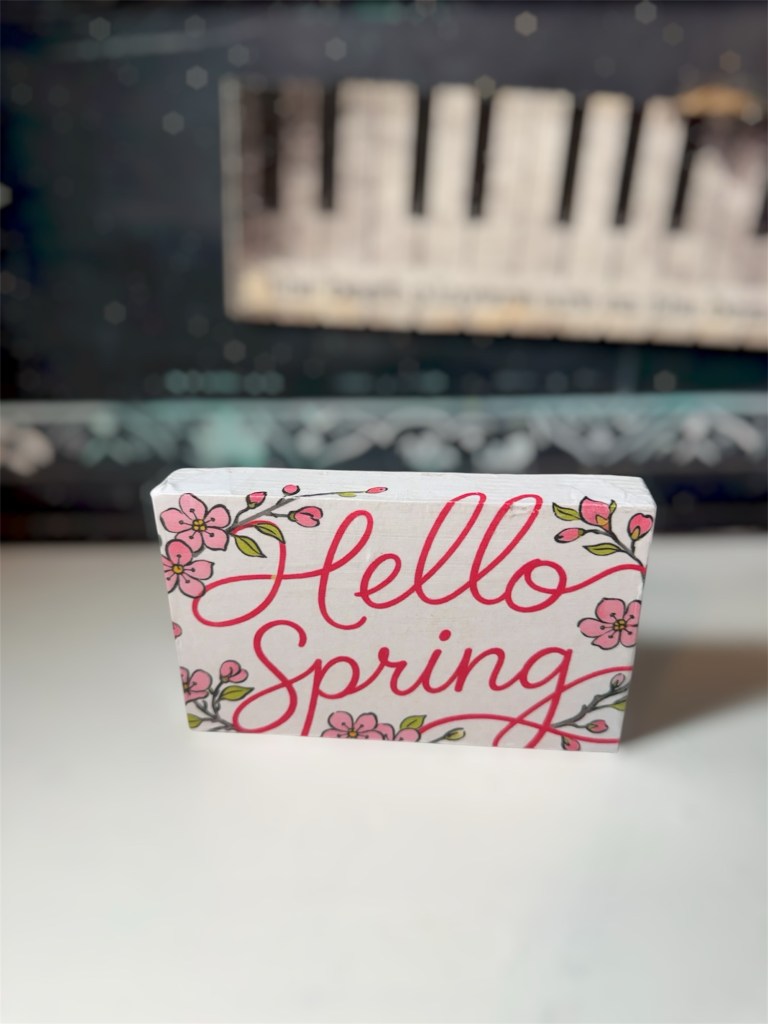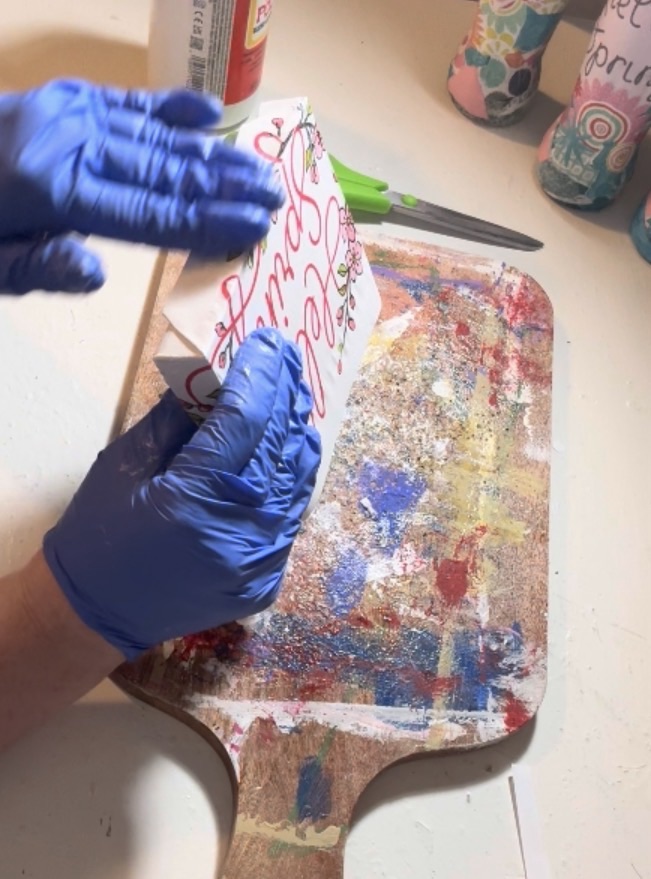 Printed a floral “Hello Spring” design (with blossom details) Used Mod Podge to attach it to the front